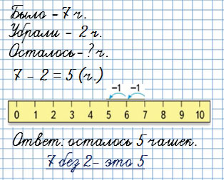 Сколько осталось? Убрали, значит, уменьшилось. Вычитание.