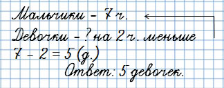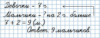 3. На прогулку вышли 7 девочек, а мальчиков — на 2 больше. Сколько мальчиков вышло на прогулку?