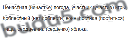 Ненас_ная погода, учас_ник игры, доблес_ный воин, пос_ная пища, сер_цевина яблока.