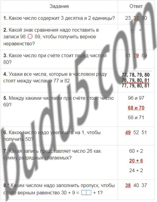| 1. Какое число содержит 3 десятка и 2 единицы? | 23 32 30 |
