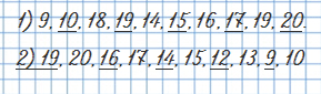 7. 1) Напиши число, которое при счёте следует сразу за числом: 9, 18, 14, 16, 19.