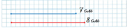 Красный отрезок длиннее синего на 1 см.