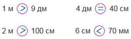 1 м > 9 дм 1 м = 10 дм 10 дм > 9 дм |