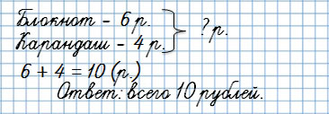 Вера купила блокнот за 6 р. и карандаш за 4 р. Сколько всего рублей стоили блокнот и карандаш вместе?
