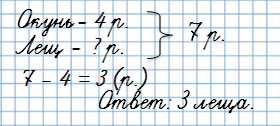 2. Володя поймал 4 окуня и 3 леща. Сколько всего рыб он поймал? Реши задачу.