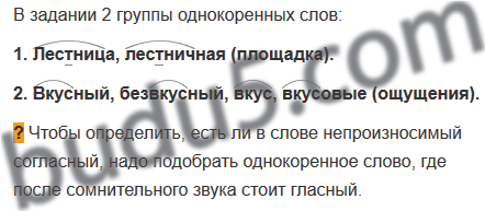 В каких словах есть непроизносимые согласные звуки? Подчеркни буквы, которые обозначают эти звуки. Запомни, как пишутся эти слова. Обрати внимание, что в словах с корнем -вкус- нет непроизносимого согласного звука. Какие проверочные слова это доказывают?