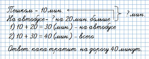 6. До остановки автобуса папа идёт 10 мин, а на автобусе едет на работу на 20 мин больше, чем идёт до остановки. Сколько всего времени он тратит на дорогу?