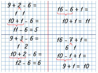 | 9 + 2 - 6 | 16 - 6 + 1 | 8 + 6 | 9 + 8 |