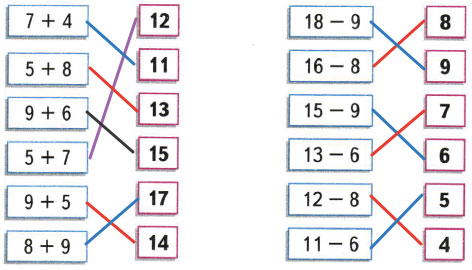 Соедини линией карточку, на которой записан пример с карточкой, на которой записан его ответ.