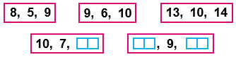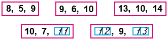Найди правило, по которому записаны три числа в каждой рамке. Запиши в окошки нужные числа.