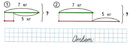 1) Выбери схематический чертёж, который подходит к задаче, и закрась кружок с его номером. Реши задачу.