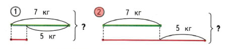 2) Каким словом, записанным на карточке, надо заменить одно слово в условии задачи, чтобы новой задаче соответствовал оставшийся схематический чертёж? Закрась эту карточку.