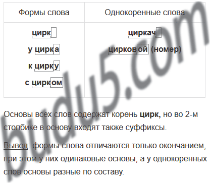 Выпиши в один столбик однокоренные слова, а в другой – формы одного и того же слова. Как ты это определил?