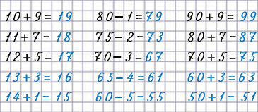По найденному правилу запиши ещё по два примера в каждом столбике и выполни вычисления.