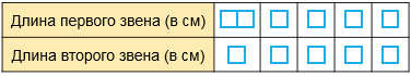 Ломаная состоит из двух звеньев. Какой длины они могут быть, если длина ломаной 11 см? Запиши эти данные в таблице.