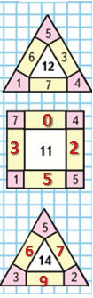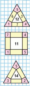 В занимательных рамках сумма чисел, расположенных по каждой стороне фигуры, должна быть равна числу в центре фигуры.