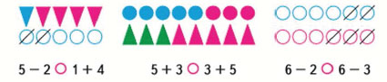 1. Сравни выражения, поставив знак "больше" (>), "меньше" (<) или "равно" (=).