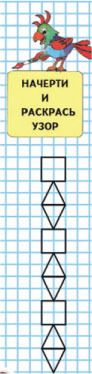 Начерти узор строго по клеточкам и раскрась. Ты можешь раскрасить элементы узора в разные цвета или в один из вариантов, которые мы тебе предлагаем.