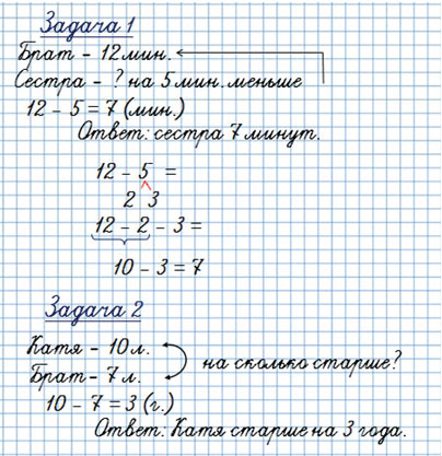 2) Кате 10 лет, а её брату 7. На сколько лет Катя старше своего братишки?