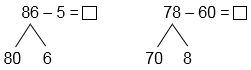Число 86 представим в виде суммы разрядных слагаемых 80 и 6. Удобно число 5 вычесть из числа 6, получим 1. Затем число 1 прибавим к числу 80.