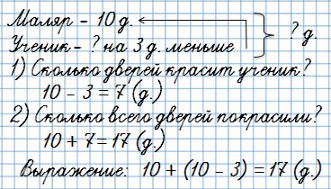 4. Маляр покрасил за день 10 дверей, а его ученик - на 3 двери меньше. Сколько всего дверей они покрасили за день?