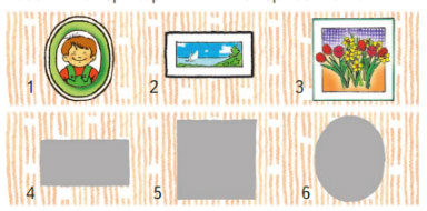 7. На стене остались отпечатки от картин. Назови номер картины и номер ее отпечатка.