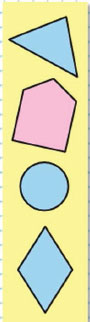 2) Лишняя фигура - пятиугольник, потому что он розовый, а остальные фигуры голубого цвета.