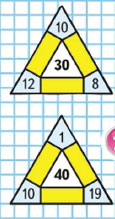 В занимательных рамках сумма чисел, расположенных по каждой стороне фигуры, должна быть равна числу в центре фигуры.