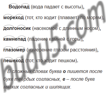 Понаблюдай, какие буквы соединяют два корня в сложных словах. Подчеркни эти буквы. После каких согласных пишется о, а после каких е?
