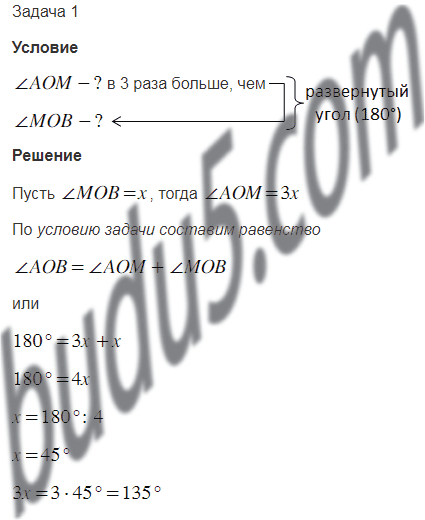 1. Луч ОМ разделил развёрнутый угол АОВ на два угла: АОМ и МОВ. Угол АОМ в 3 раза больше угла MOB. Чему равны углы АОМ и ВОМ? Постройте эти углы.