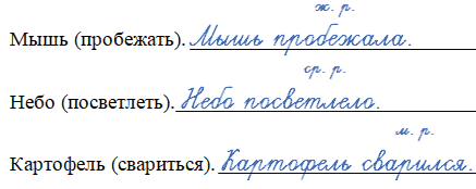 Прочитайте. Составьте и запишите нераспространённые предложения, употребляя глаголы из скобок в прошедшем времени. Укажите род глаголов.