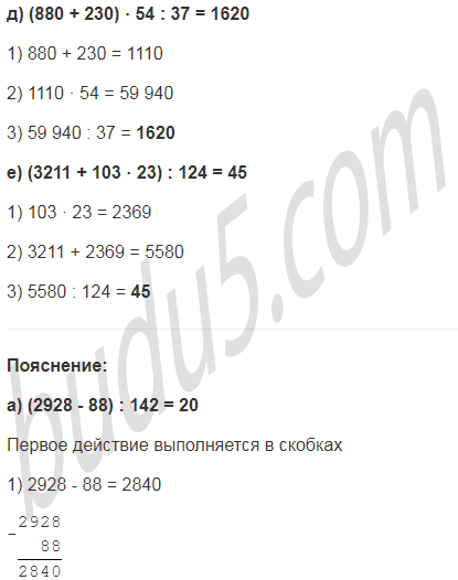 а) (2928 - 88) : 142;