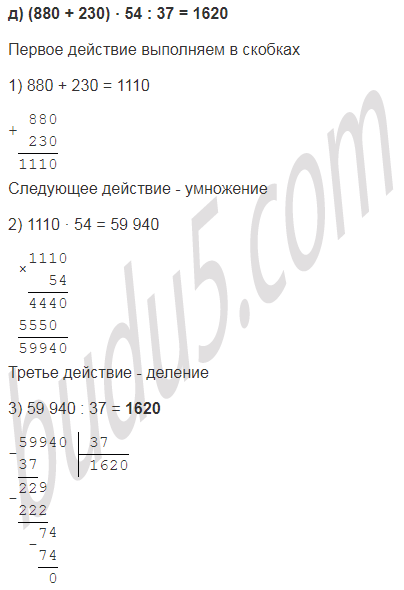 д) (880 + 230) · 54 : 37;