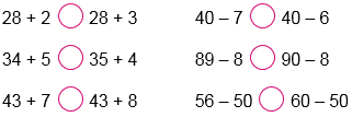 | 28 + 2 < 28 + 3 | 40 - 7 < 40 - 6 |