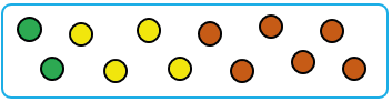 Раскрась кружки так, чтобы жёлтых кружков было на 2 больше, чем зелёных, а коричневых - столько, сколько жёлтых и зелёных вместе.