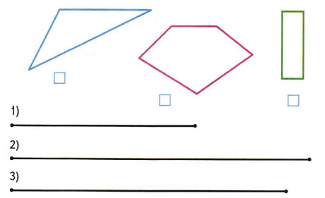 Под каждым многоугольником запиши номер отрезка, длина которого равна периметру этого многоугольника.