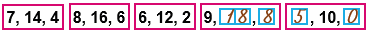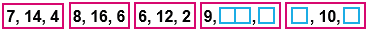 Найди правило, по которому записаны три числа на каждой карточке. Запиши в окошки нужные числа.