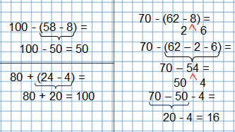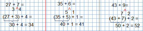 | 7 + 9 = 16 | 35 + 6 = 41 | 80 + (24 – 4) = 100 |