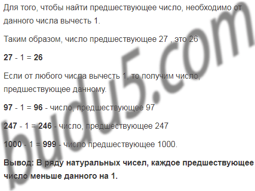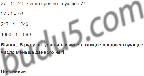 Назовите число, предшествующее числу 27. Найдите разности: 97 - 1; 247 - 1; 1000 - 1. Сделайте вывод.