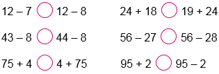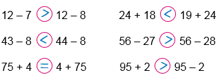 | 75 + 4 = 4 + 75 | 95 + 2 > 95 – 2 |