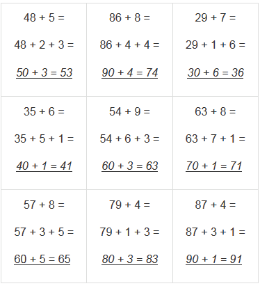 Повтори случаи табличного сложения.