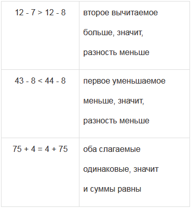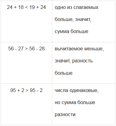 | 12 – 7 > 12 – 8 | 24 + 18 < 19 + 24 |