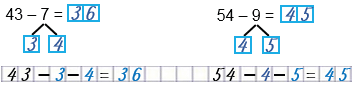 7 - это 3 и 4. Удобно из 43 сначала вычесть 3, а затем из 40 вычесть оставшиеся 4 единицы. Получим 36.
