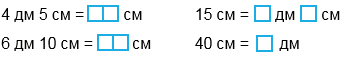 | 6 дм 10 см = 70 см | 40 см = 4 дм |