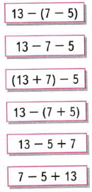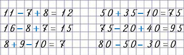 Запиши знаки действий "+" и "-" и, если надо, расставь скобки так, чтобы получились верные равенства.