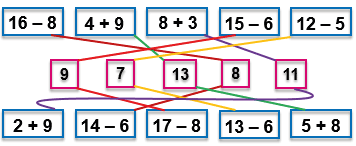 Раскрась одним и тем же цветом карточки, на которых записаны выражения с равными значениями.