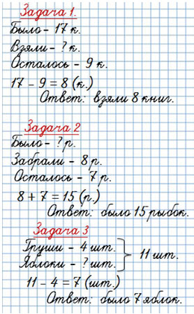 Около каждой задачи вставь в кружок знак действия, с помощью которого она решается.