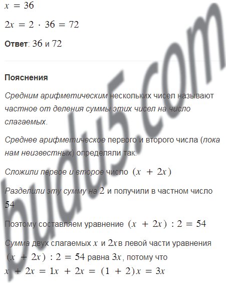 Среднее арифметическое двух чисел равно 54. Одно число в 2 раза больше другого. Найдите эти числа.
