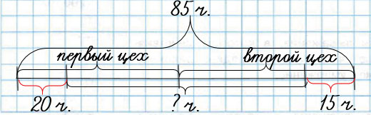 24. В двух цехах агрокомбината работали 85 человек. После подключения к работе двух роботов-манипуляторов число сотрудников одного цеха уменьшилось на 20 человек, а второго - на 15 человек. Сколько человек работает в этих цехах теперь?