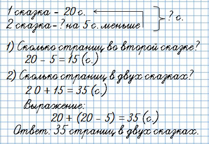 25. В книге две сказки. Одна сказка занимает 20 страниц, а вторая - на 5 страниц меньше. Сколько страниц книги занимают эти две сказки?
